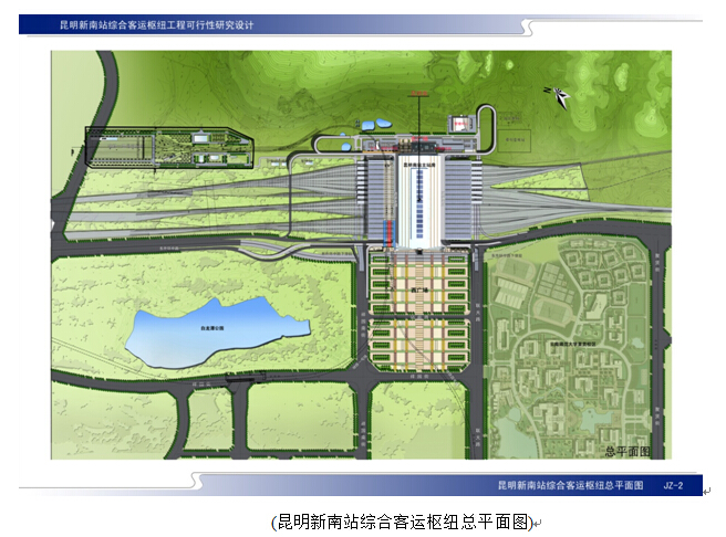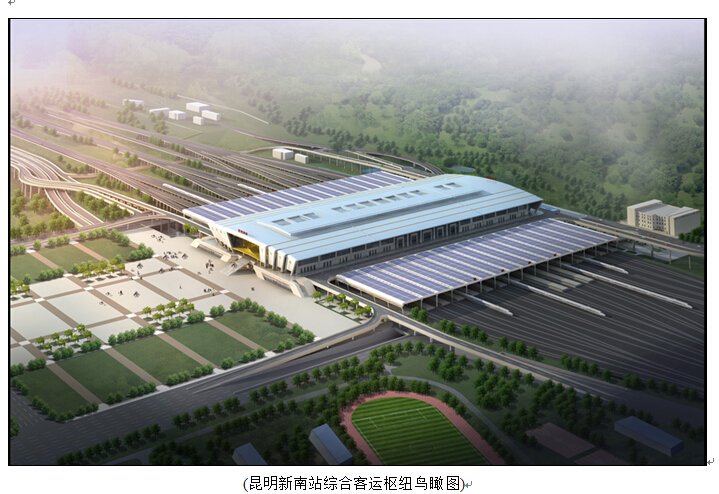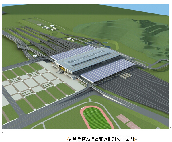 项目位于昆明市呈贡吴家营片区龙潭山下,距离新建的昆明市行政中心约3公里、滇池约7公里,距主城和空港约25公里。本项目工程范围为火车南站450米站房宽度范围以外周边配套市政道路工程,包括站场北侧的两条通道工程、站场南端下穿隧道工程、连接匝道工程,共16条道路,总长6.63公里,其中桥梁3.41公里,隧道0.81公里。估算总投资9.19亿元。工程于2013年9月开工建设。已建成于2016年末同昆明南站一并投入使用。